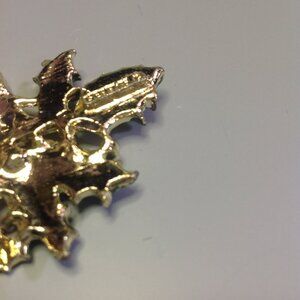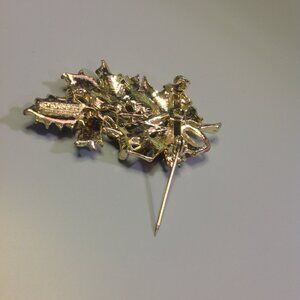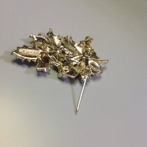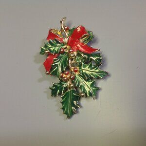 Gerry Jewelry Christmas Brooch Green Bough of Holly + Red Ribbon Bow