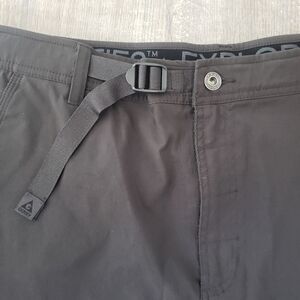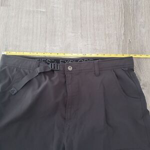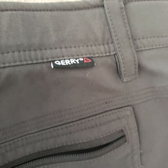 Gerry Men's Outdoor Hiking Quick-Dry Cargo Dark Grey Shorts. Size 40, 9" Inseam, 21.5" Length. Explore the Possibilities on inner waistband. No rips or tears. Very Small stain on back side, shown in photos.