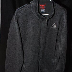 This is a black Gerry Mens XL - Extra Large jacket that has a ribbed knit and a fleece lining. It has a full zip to extend the neck for more wind protection. It is very nice and would be good for any occasion such as golf or business. If you have any questions please feel free to ask.