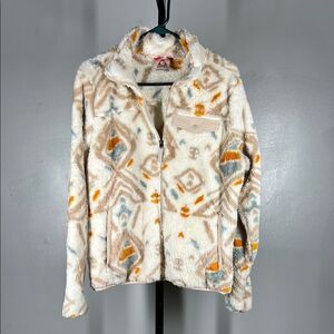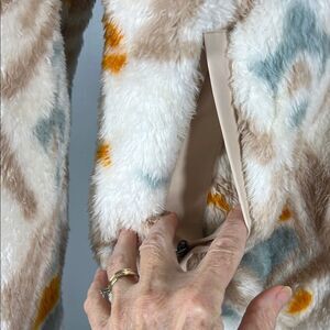 Experience the cozy elegance of the Gerry Weber Teddy Jacket, crafted in a plush cream and orange fabric. This jacket features a striking geometric design, making it a standout piece for any wardrobe. Perfect for cooler days, it offers both warmth and a unique style.