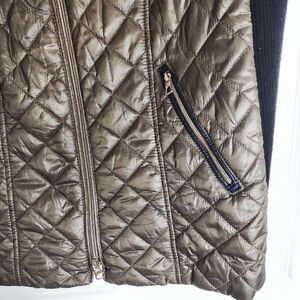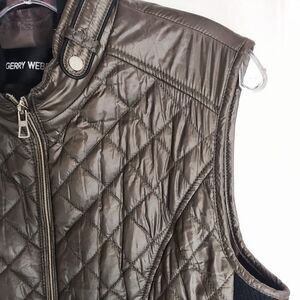 Gerry Weber Brown Vest Quilted Zip Front Black Side Knit2 Front Pockets M