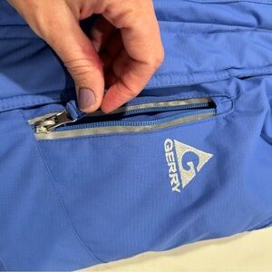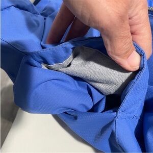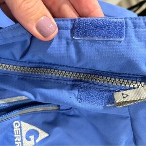 Features: Fuzzy hood, reflective, zippered pockets, waterproot, zipper and hook and loop closure, zipper at cuffs to expand arms, insulated