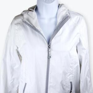 Gerry White Rain Coat Zip Front Drawstring Hoodie Jacket Size Small.