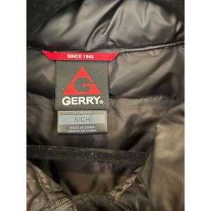 Like new Gerry black puffer jacket with two front pockets and zip closure. Polyester exterior with polyester filling. The filling is rated 650, which is good for colder weather. Measures 18" pit-to-pit and 26" long. Size small.