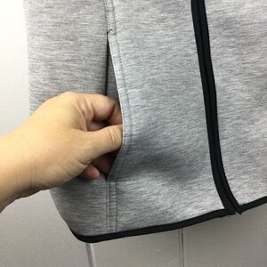 Gerry Gray/Black Zip Hooded Scuba Vest. Size - Small. 76% polyester, 17% rayon, 7% spandex. Front has two pockets and Gerry logo embroidered in lower left front corner. Vest is in excellent shape with no stains or holes. Exterior is gray scuba fabric and interior is black scuba fabric. Zipper pull also has Gerry logo.