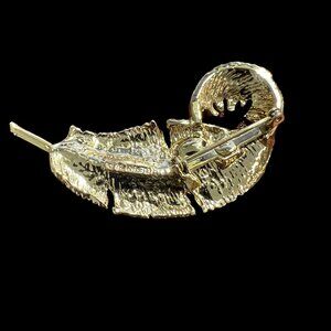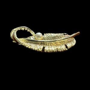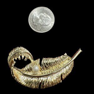 Gerrys Brooch Feather Pearl Gold Tone Leaf Pin Vintage