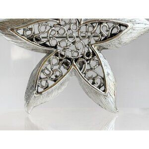 Gerry's signed vintage silver toned filigree inspired open work starfish brooch. The brooch is textured alongg the outer edges with cutout filigree style (adjacent to filigree, but similar) along the center section. Moderate in size, see measurements below.