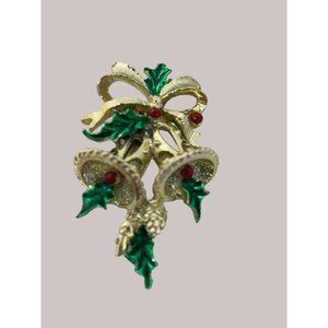 Gerry’s Vintage Christmas Bells & Holly Brooch 2”x1”