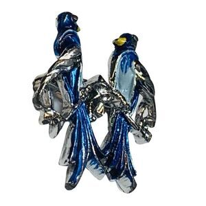 Gerrys Womens Blue Enamel Love Birds On A Perch Silver Tone Vintage Brooch