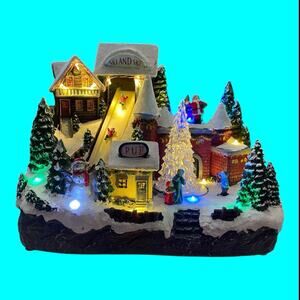 Gerson Alpine Village Christmas Castle Musical Revolving Tree Skiers Lighted