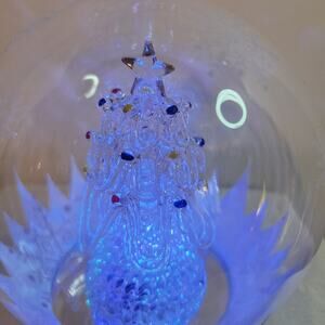 Add a touch of sparkle to your holiday décor with this Gerson International Sterling LED lighted glass Christmas tree ornament. Standing 5.5 inches tall, this ornament features a clear glass globe with a delicately sculpted tree inside, accented by colorful glass beads. The built-in LED light gently changes colors, creating a magical glow.