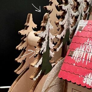 This product is brand new but does have a little chip on a tree branch on the left side and a spot at the top of that same tree that was glued back on. On the right there is a branch missing some paint. None are very noticeable. See pictures for details.