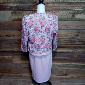 Vintage Two Piece Skirt Suit Womans Size Large Pink Floral Roses Shoulder Pads Flowers