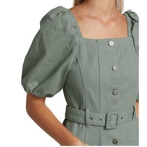 industrial in a durable exposed seamed design, this sheath dress flaunts puff sleeves for an understated dainty finish.