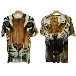 Get A Life Men's Tiger Face Graphic Print Pullover Short Sleeve Shirt Small NWOT