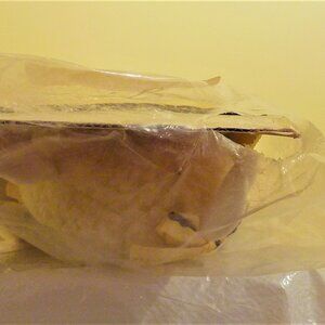 Still factory sealed in its original JCPenney Catalog packaging, this is a vintage 1984 Woolma Lamb plush doll. There is a small rip on the plastic bag (please see photo # 6) and a larger rip (shown in photos # 7, and 8) on top of bag. However, bag is still zip-tied at the bottom, never opened. Please review photos. They show the exact item for sale