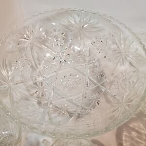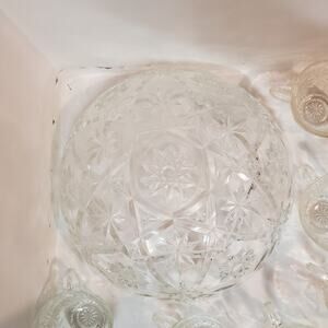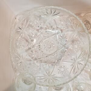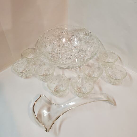 This vintage punch bowl set is perfect for your next gathering, whether it's a sophisticated soiree or a rager with your closest friends (we won't judge). This mid-century modern masterpiece, likely from the fabulous 1960s, features a stunning 10 3/4" glass etched punch bowl and eight matching cups. Imagine the stories this set could tell! Made by the renowned L.E. Smith Glass Company, known for their quality and craftsmanship, this set is a true collector's item. It's in fantastic condition, ready to be the life of your next party. Don't miss out on this chance to own a piece of history – and maybe make some of your own!