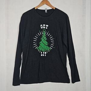 "Get Lit" Charcoal Grey Ugly Christmas Long Sleeve Tee - Unisex in great condition.