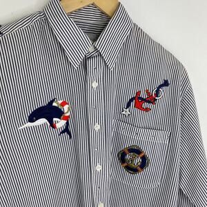 Get Lucky Blue White Striped Nautical Button Front Shirt Women's Size Medium M