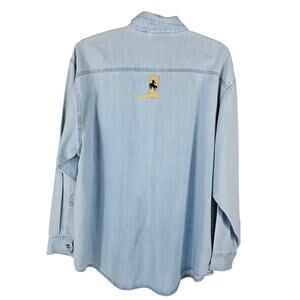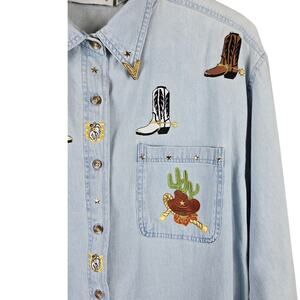 Get Lucky Boots Horse Shoes Novelty Denim Feminine Country Western Shirt L