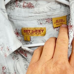 Get Lucky Mens Large Shirt Textured Floral Vines All Over Button Up Casual Short