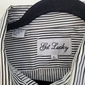 Get Lucky Size L Sequined Dragonfly Striped Button Up Shirt