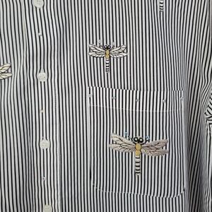 Get Lucky Size L Sequined Dragonfly Striped Button Up Shirt Mature Nature