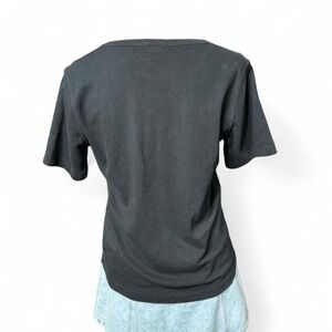 🖤 Y2K black rhinestone slogan tee by Get Lucky USA, size M. Features sparkling crystal lettering across the chest that reads "I don't sweat… I sparkle" for that cheeky Y2K glam-athleisure vibe. Short sleeves with a v-neckline in a soft cotton-blend knit (no material tag, feels like cotton/poly). Lightweight and comfy with stretch.