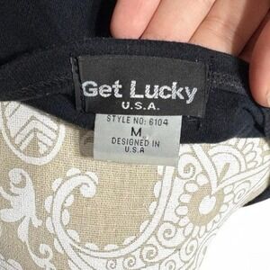Get Lucky USA Black Rhinestone Slogan Tee Women's Medium Y2K Sparkle Graphic