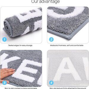 Super absorbent bath mat keeps feet dry. Non-slip backing ensures safety on wet floors, providing a secure, slip-free experience.