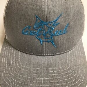 Get Reel Snapback Hat Mesh Back Marlin Gray Aqua Blue Deep Sea Fishing Cap FL. Richardson brand cotton poly blend. Excellent preowned vintage condition; snapback adjustable.