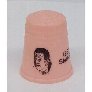 This vintage Get Smart pink plastic sewing thimble is a rare find from an estate sale and a charming addition to any sewing or advertising memorabilia collection. Measuring approximately 0.87" high x 0.75" in outside diameter x 0.52" inside diameter, this collectible thimble pays homage to the classic 1960s TV series, Get Smart. Please note: There is a small rough area on the bottom rim, but it remains in good vintage condition (see all photos for details). Whether you're a sewing enthusiast, a fan of vintage advertising collectibles, or a lover of nostalgic TV memorabilia, this piece is a delightful and unique find.