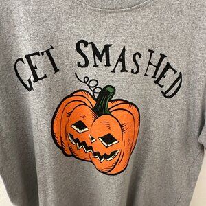 Get Smashed Pumpkin Halloween Heather Grey Unisex T-Shirt Size XL 40% Polyester 60% Cotton