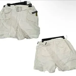 White cuffed cotton shorts! With a belt and pockets