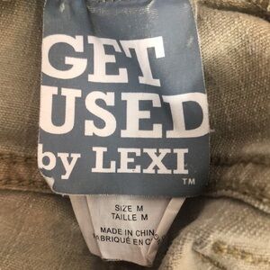 Khaki, distressed markings on pockets, hems,faded stripes throughout,mark on thigh of right leg see picture,colors may vary due to lighting,good used condition, Sz: M