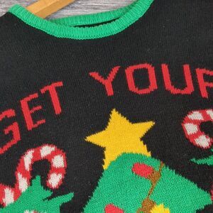 Pre-owned, gently worn unisex Get Your Jingle On Roebuck & Co. ugly Christmas sweater.