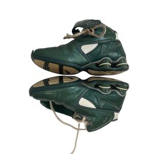 Make a statement wearing Nike Shox tennis shoes! This eye-catching mix of green and white colors does just that.