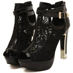 ✨ Getmorebeauty Ankle Boots Women Black Leather Pretty Open Toes High Heel Boot