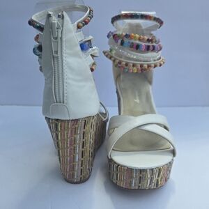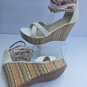 Getmorebeauty Women's Multicolor Beaded Wedge Sandals. Size 36- 6 USA