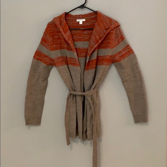 Great Fall hooded cardigan style sweater with belt. Over the butt length.