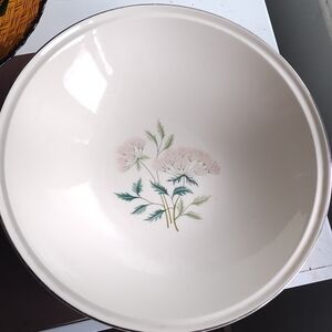 bowl measures 2 3/8"tall to the rim of bowl x 10" diameter in good used condition The large serving platter measures anout 8 in wide and 10 in long It has some crazing and also has a small chip on the underside edge (see photo ) Also included is a vintage 9 inch Indiana Glass bowl with basket weave pattern great condition