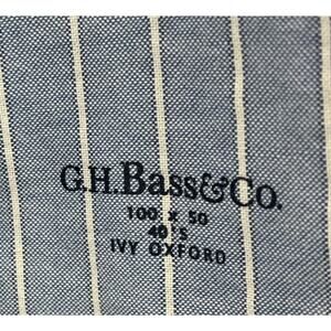 G.h. Bass & Co Ivy Oxford 40’s Longsleeve Button Up Slim Fit Shirt Size Large Elevate your style with this G.h. Bass & Co Ivy Oxford shirt. The slim fit design and long sleeves create a sleek silhouette that's perfect for any occasion. The blue color and 40s theme add a touch of vintage charm to your wardrobe.