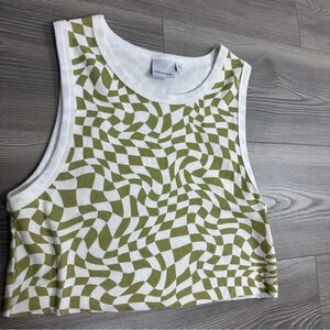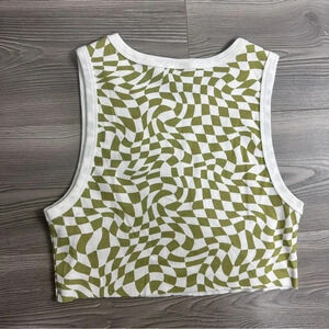Ghanda Checkered Swirl Cropped Tank Top with Raw Hem