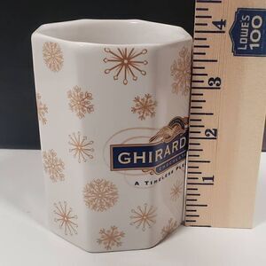 Ghirardelli Chocolate Mug Gold Snowflakes On White Houston Harvest Coffee Cocoa