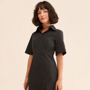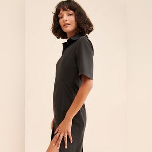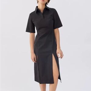 Ghospell faded black power slide midi dress. Size S. Collared shirt dress. Double side slit up front.