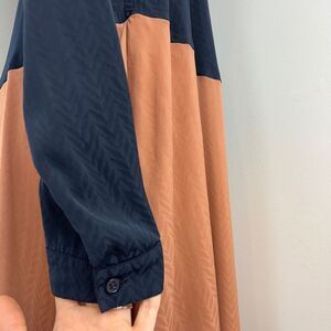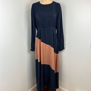 Ghospell Women's Large Colorblock Blue Peach Long Sleeve Maxi Dress Peasant Chic
