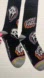 Stylish black socks featuring a unique graphic design. Perfect for adding a touch of personality to your outfit.