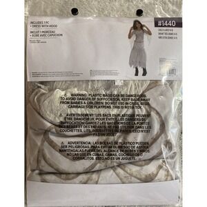 Ghost Girl Skeleton Halloween Costume Dress With Hood Size Child XL 14-16 New