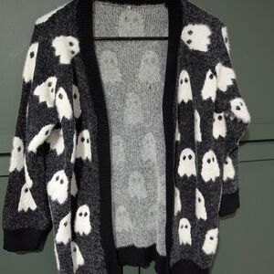 Cozy, extremely soft, sweater with a playful ghost pattern. Perfect for a fun, casual look. Get yourself ready for the Halloween season ๐
