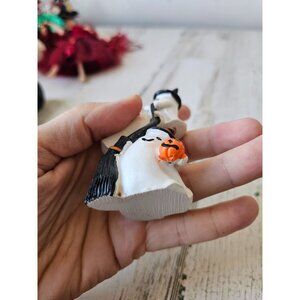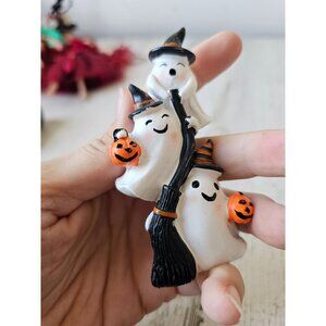 Ghost Witch figurine village Halloween decor broom pumpkins totem unique mini